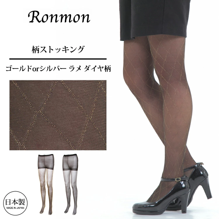 【日本製】ダイヤ柄 ラメ入り ストッキング 黒 柄ストッキング 透け感 おしゃれ 美脚 パーティー 貝塚工場直送 M-L