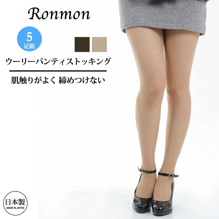 【日本製】締め付けない ウーリーストッキング 5足組 柔らかい履き心地 ゆったり設計 M-L L-LL 貝塚工場直送