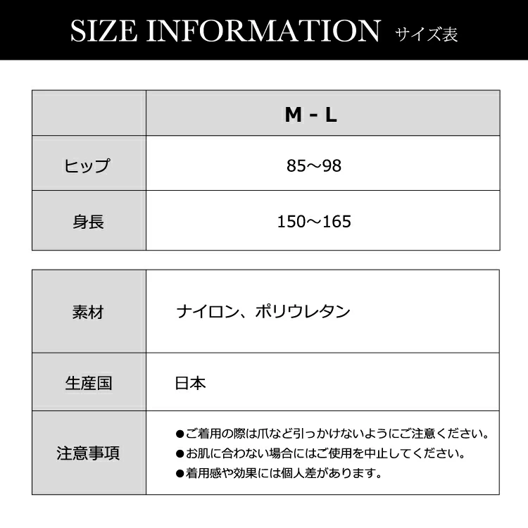 • サイズ: M-L(ヒップ 85~98cm / 身長 150~165cm)